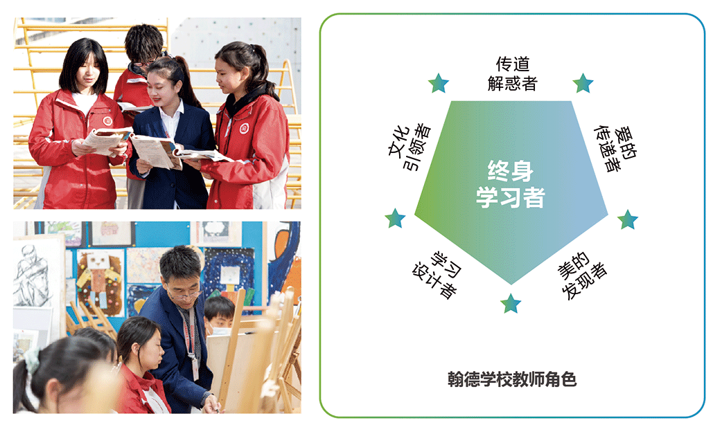 翰德中学教师不仅具有扎实、深厚的学科素养,还有教育的激情与梦想,进入学校的每位教师拥有三项基本功:第一、课堂掌控,实施高效课堂;第二、班级管理,落实自主发展;第三,家校沟通,实现立体教育。他们有强劲的学习力、应变力、创造力以及满含时代气息、符合现代教育发展趋势的思维和方法,更适合学生的未来发展需要。他们经历了“百里挑一”,学校选拔教师不唯学历与经历,品行与专业素养第一,考核评价是优质优酬、多劳多得,既要激励人、培养人,还要成全人。
